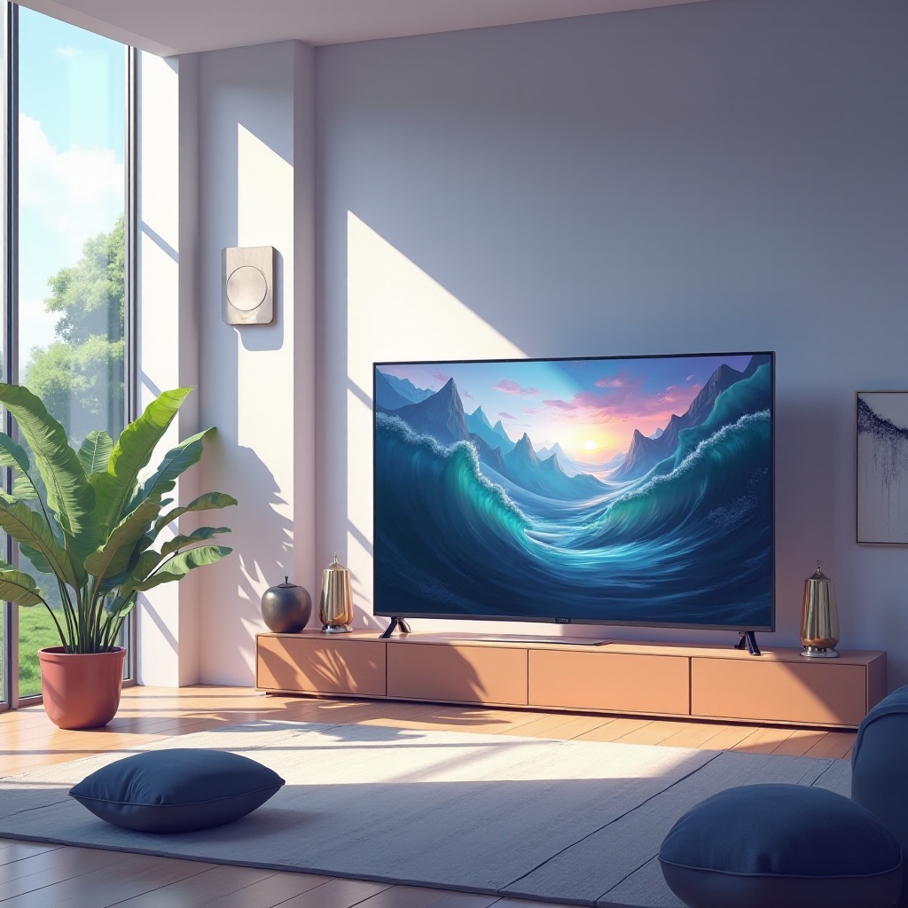 TV 크기가 방 크기와 일치하는지 확인하세요. 일반적으로 40-55인치 TV가 대부분의 거실에 적합합니다.
